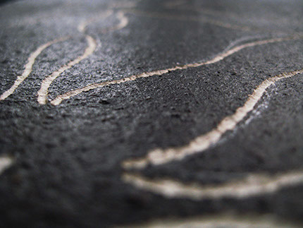 Gravur auf Lehmputz mit Kasselerbraun