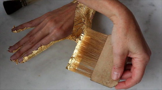 Gold und Silber auf Leimfarbe